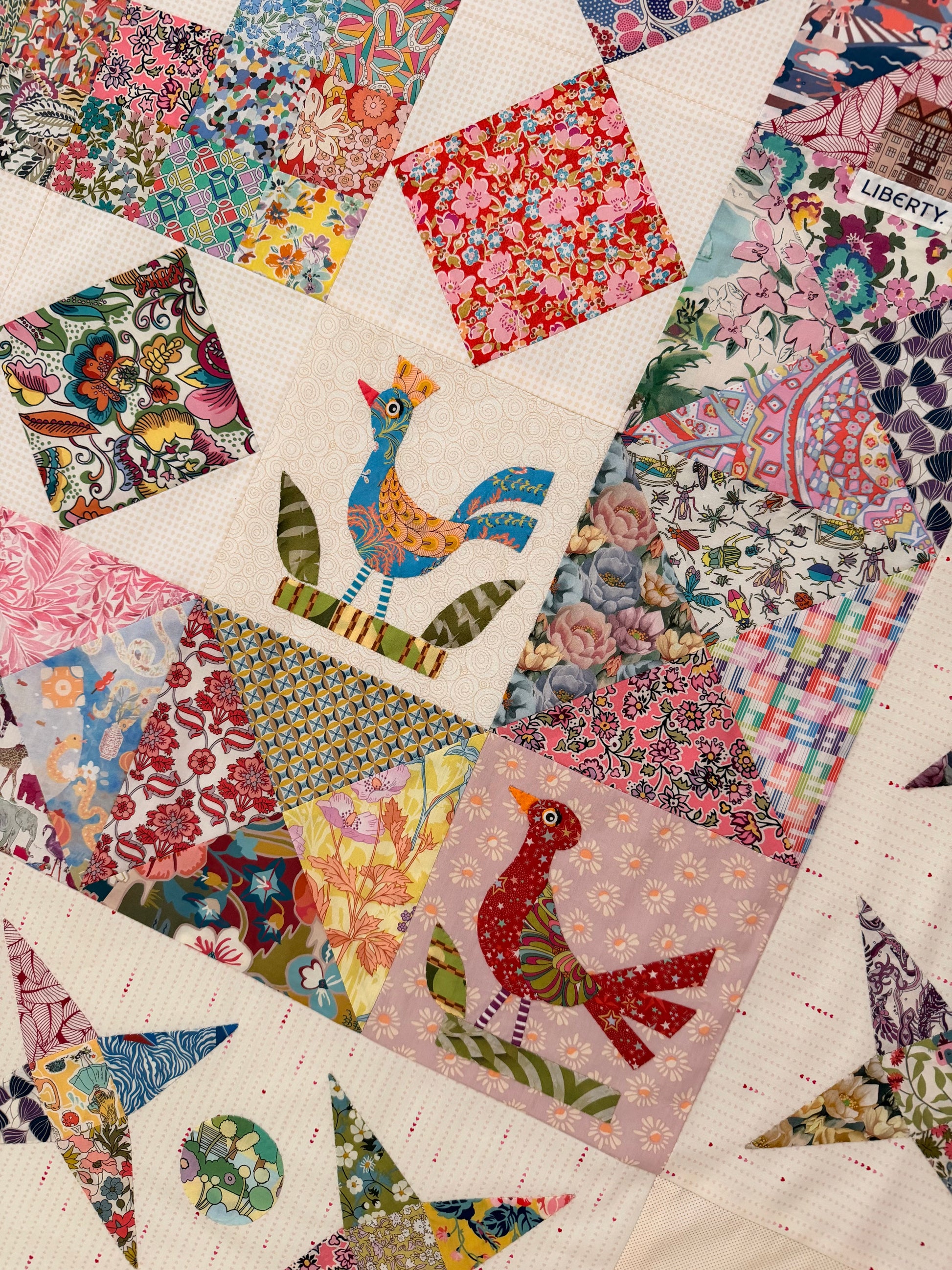 This joyful quilt features a curated selection of Liberty Tana Lawn and Art Gallery background fabrics.